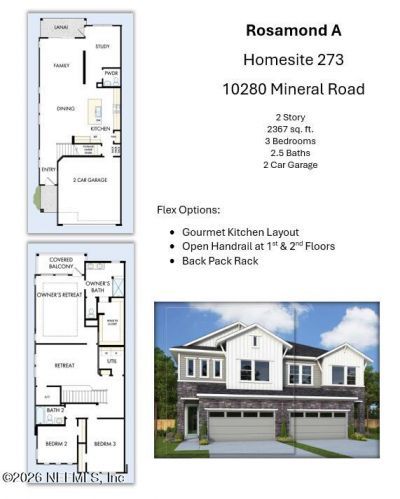 This townhouse located at 10280 Mineral Road, Jacksonville, FL 32256 is currently listed for sale with an asking price of $537,281. This property was built in 2026 and has 3 bedrooms and 2 full and 1 partial baths with 2367 sq. ft. Mineral Road is located in the Kettering at eTown subdivision. Search Kettering At ETown real estate on sstires.watsonrealtycorp.com today.