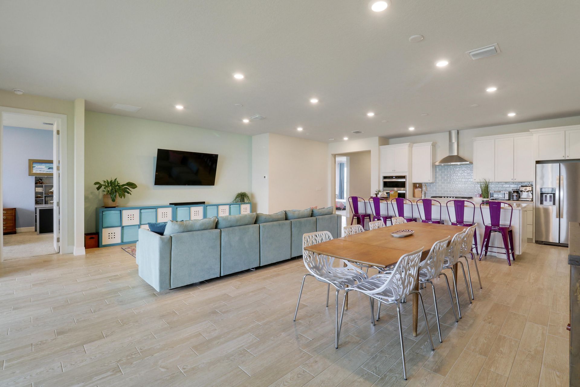 Lakefront home with numerous upgrades offering 5 bedrooms, 4 full baths, a 3-car garage, and a first floor primary suite. Positioned on an extra wide lot with long water views, this home features a spacious loft with a private guest suite. High end upgrades include impact windows, a gourmet kitchen with quartz countertops, gas cooktop, oversized island, soaring ceilings, 8' solid core doors, tankless water heater, and two-zone AC. Pocketing lanai doors open to a screened outdoor living space, pre-wired for a future pool. New Publix just outside the community, with Costco and Lowe's coming soon nearby. 2 miles to the Cleveland Clinic Tradition Hospital and approx. 10 minutes to I-95. Full features/upgrade list available.