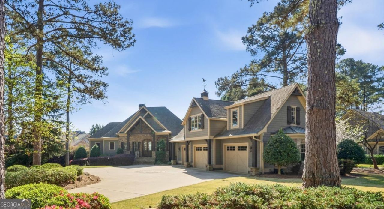 Enjoy breathtaking lake views and front-row spectacular holiday fireworks from this stunning Craftsman-style retreat in the private golf course community of Cuscowilla on Lake Oconee. This beautifully designed 4 bedroom, and 3.5 bath (main home) perfectly captures the essence of refined lake living. At the heart of the home is a chef's kitchen featuring large island, spacious dining area, and a dramatic vaulted family room w/soaring floor to ceiling stone fireplace and a charming loft above. The main living area flows seamlessly into a sun-drenched sunroom with all new windows, offering tranquil lake views. The spacious primary suite on the main level is a peaceful sanctuary, with its own fireplace an private porch-an idyllic setting for morning coffee or sunset lake views. Terrace level is designed for entertaining, featuring a generous great room w/fireplace and bar along with 3 additional bedrooms. The terrace level includes an infinity pool, hot tub and outdoor kitchen. The property includes an assigned boat slip is just steps from the yard. The over the garage guest quarters with bath is ideal for sleeping 6 to 8 extra people. Great for entertaining. Professionally landscaped grounds . Assigned Slip. Tritoon, golf cart and furnishings are negotiable. Golf membership is available.