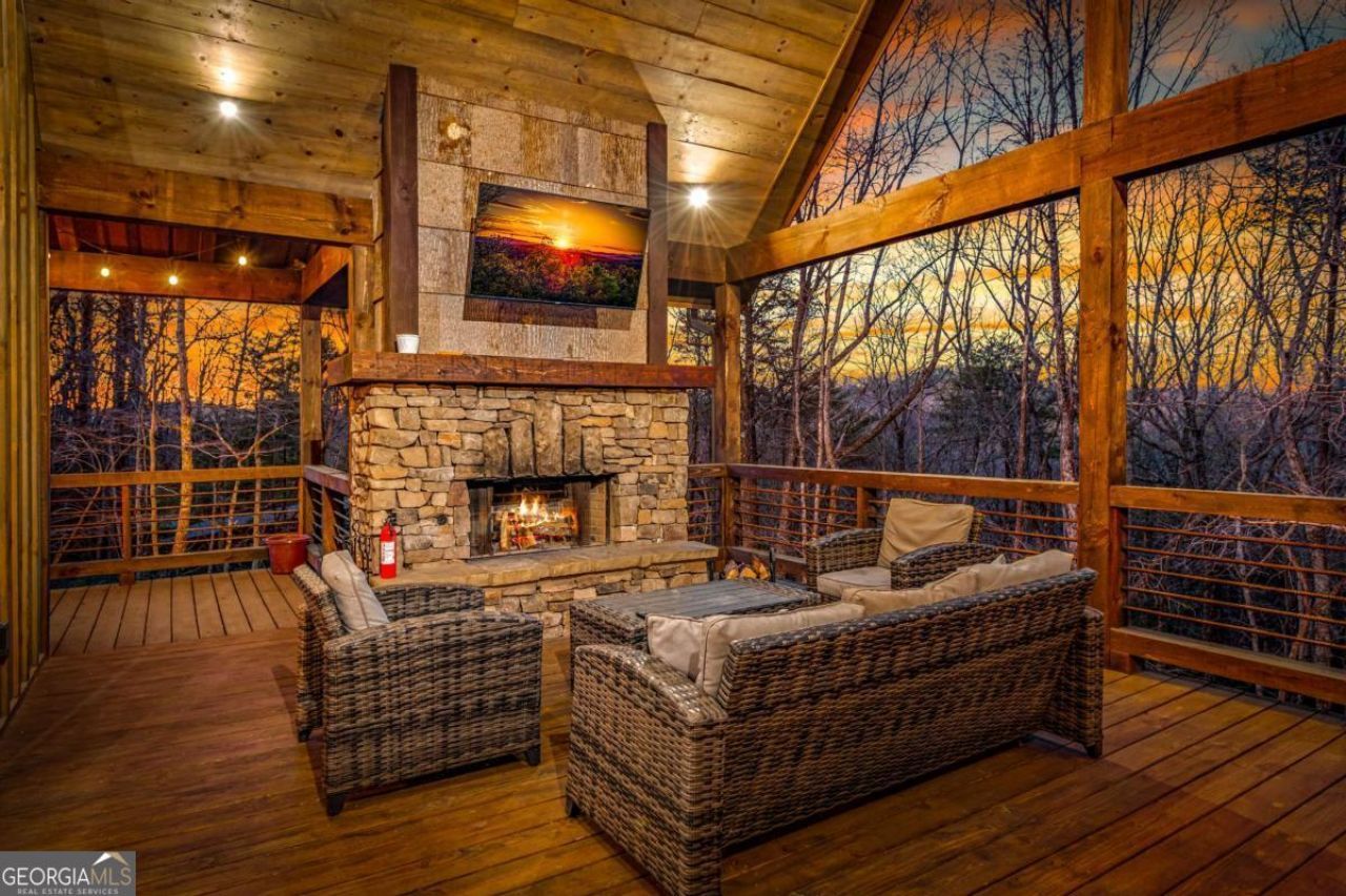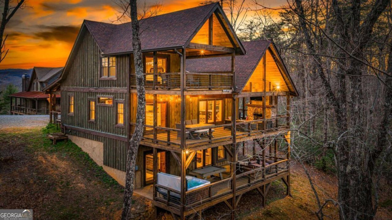 Welcome to your Cohutta Mountain escape-where classic Craftsman style meets relaxed mountain living! Built by Nicholson Builders, this 3 bedroom, 3.5 bath retreat (plus a fun loft bunk room) is designed for making memories, whether you're hosting guests or enjoying a quiet getaway. The main level welcomes you with a warm and inviting great room, blending drywall and wood accents, rich wood floors, a stunning stack rock fireplace, and a wall of windows that brings the outdoors in. The kitchen is a dream for gathering-featuring Viking appliances, granite countertops, a center island, and an adjoining dining area perfect for everything from morning coffee to holiday dinners. The spacious primary suite offers a peaceful retreat with a walk-in closet, double vanities, and a beautifully tiled shower. Step outside to the expansive porch where mountain living truly shines-complete with an outdoor fireplace, BBQ area, and a cozy porch swing made for unwinding after a day of adventure. Upstairs, you'll find a charming open loft bunk room, guest bath, and a private guest bedroom with its own large balcony-perfect for taking in the fresh mountain air. The terrace level is made for entertaining, featuring a den with a second fireplace, acid-etched floors, and a wet bar with full-size fridge. Another guest bedroom and bath provide comfort and privacy for visitors. Just outside, enjoy the lower porch with a hot tub and double swings-your own private retreat under the stars. Currently an established rental, this home offers incredible investment potential, but it's equally suited as your forever home or personal mountain getaway. Located just 15 minutes from Blue Ridge and close to hiking, fishing, and endless outdoor adventures, this is mountain living at its finest! With easy access, ample parking, and a beautifully wooded setting, you'll enjoy both privacy and convenience in a serene mountain setting that truly captures the essence of North Georgia living.