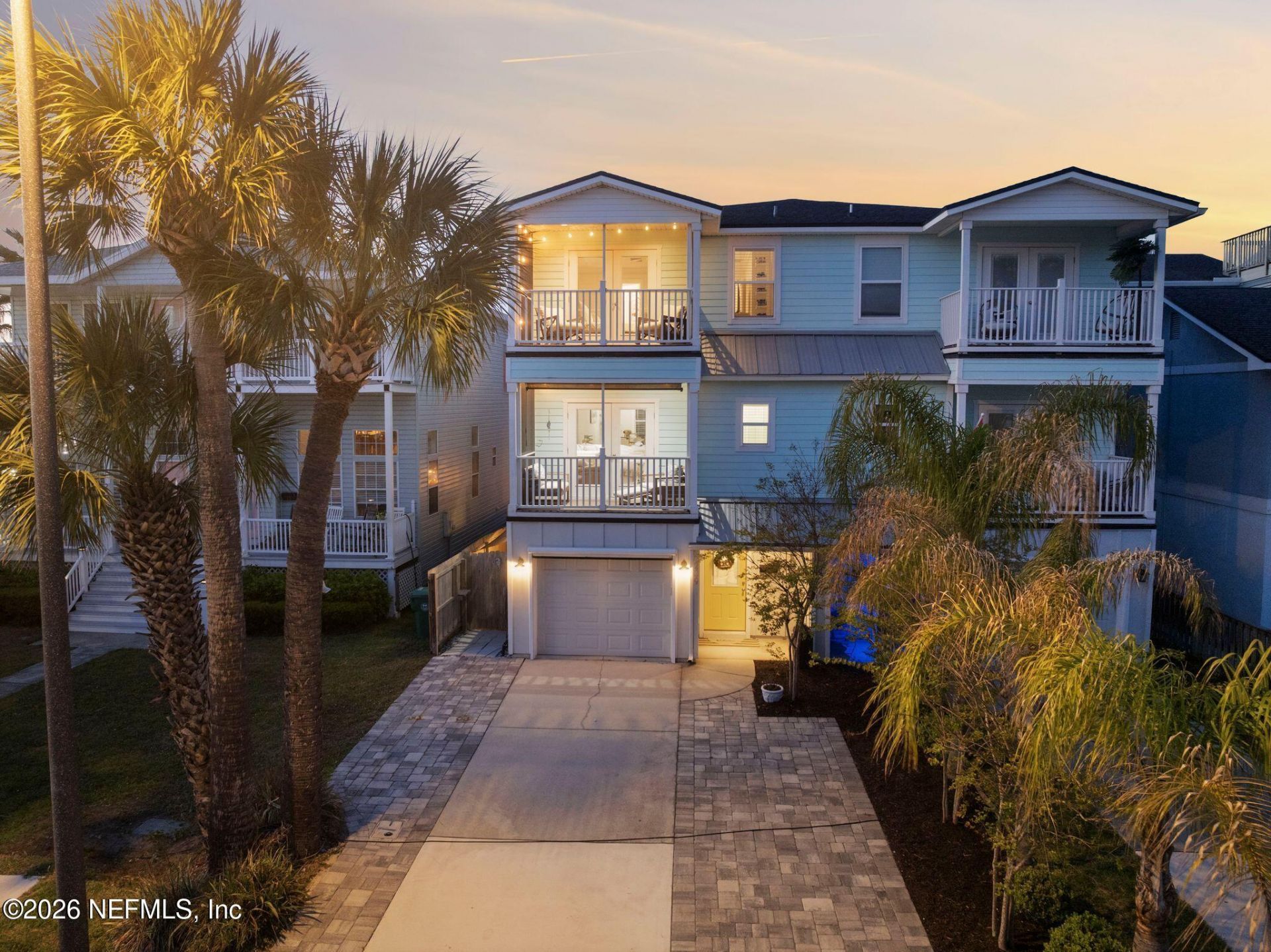 Welcome to your private coastal retreat just blocks from the ocean, ideally positioned east of A1A in Jacksonville Beach with no HOA.This 4-bedroom, 3.5-bath home offers thoughtfully designed living space that blends comfort, function, and effortless beachside living. Recent upgrades provide peace of mind and modern appeal, including two HVAC systems (2022 & 2026), fresh interior paint (2024), and all new kitchen appliances (2025).The primary suite is a true sanctuary, featuring custom built-ins in both the bedroom and walk-in closet for elevated style and smart storage. Screened balconies on the second and third floors invite coastal breezes, with a peek of the ocean from the top level.Step outside to your private fenced backyard oasis, complete with an above-ground spa pool, spacious wooden deck, and additional storage below. An outdoor shower and separate storage shed add convenience after long days at the beach. Additional highlights include a 1-car garage with retractable screen and an extended paver driveway accommodating 4+ vehicles, ideal for guests or beachside entertaining.Enjoy the ultimate coastal lifestyle just steps from the sand. Walk or bike to nearby cafes, restaurants, and shops, or cruise the neighborhood by golf cart for relaxed, sun-soaked living.Blending location, space, and lifestyle, this home offers a rare opportunity to own a spacious coastal home in one of Jacksonville Beach's most desirable areas.