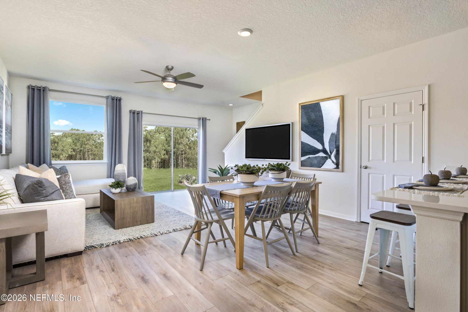 This two-story FORMER MODEL townhome is READY for move-in! This beautiful, two-story home showcases an open floor plan with 9-ft. ceilings and luxury vinyl flooring throughout. The stylish kitchen boasts a breakfast bar, quartz countertops, large pantry, Whirlpool stainless steel appliances and Woodmont 42-in. upper cabinets with crown molding. Upstairs, the primary suite features a walk-in closet and connecting bath that offers quartz countertops and a walk-shower. Additional highlights include walk-in closet at secondary bedroom, dedicated laundry space, ENERGY STAR certified lighting, Moen faucets and Kohler sinks. Outside, enjoy the convenience of low-maintenance landscaping. KB Home at Orchard Park provides maintenance free living with a tot lot, dog park low HOA and NO CDD FEES! Enjoy the proximity to Treaty Park and historic St. Augustine and its many activities! All closing costs paid including pre-paids when financing with KBHS pending fico verification. Model furniture not included in the sale of this home.