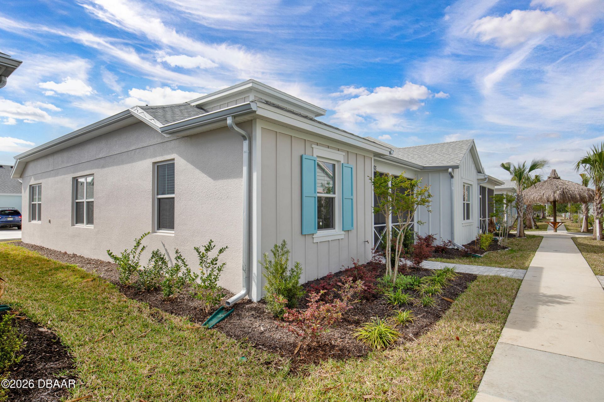 ''Experience a rare find in Latitude Margaritaville Daytona Beach with this upgraded Camellia Cottage in THE PREMIUM LOCATION within walking distance of the amenities. This 2-bedroom, 2-bathroom home radiates warmth with its unique beamed ceiling--a rare architectural gem in the Cottage collection. The interior is a showstopper, featuring durable laminate plank flooring throughout and gorgeous quartz countertops in both the kitchen and bathrooms. Ceiling fans and custom light fixtures already in place. Upgraded appliance package with GAS range, combined with modern black hardware provides a sharp, clean contrast to the striking blue tile backsplash, creating a cohesive and sophisticated, farmhouse vibe. Complete with a 2 car garage and an EV charger this home offers the ultimate turn-key lifestyle.'' You will LOVE this cottage! Latitude Margaritaville Daytona Beach is a premier 55+ private, gated community designed for active, resort-style living. Enjoy three heated pools, including a spectacular resort-style main pool, an indoor lap pool, and an outdoor sports pool. Fall in love with the exclusive PRIVATE BEACH CLUB, featuring an oceanfront pool and breathtaking coastal views.Soak up the vibe with live music every afternoon at the Bar & Chill Restaurant, or grab a bite at the lively poolside Sandbar. Stay energized at the state-of-the-art Fins Up Fitness Center, catch a show at the Mango Theater, and enjoy amenities like a dog park, pickleball, and tennis courts.Come experience this truly FINtastic community--where every day feels like a vacation.