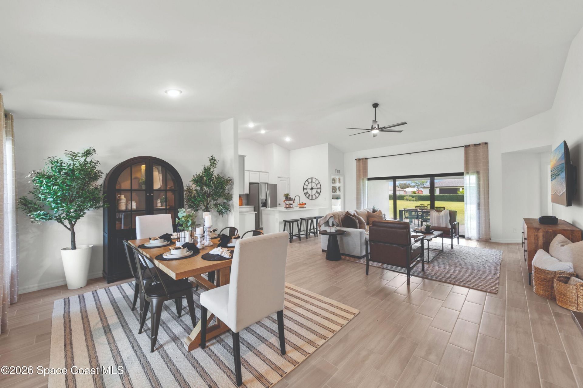 NEW CONSTRUCTION WITH WARRANTY! *Estimated delivery June 2026.* The St. Augustine blends indoor and outdoor living with a welcoming covered front porch, expansive covered lanai, and a bright, open floor plan. A vaulted ceiling enhances the main living area, connecting the dining room with double windows, kitchen with freestanding island and pantry, and a spacious Great Room with a wall of sliding glass doors for abundant natural light. The split-bedroom layout offers a private primary suite with two walk-in closets and a bath featuring a dual-sink vanity, large linen closet, and tiled shower. Three additional bedrooms provide flexibility for guests, a home office, or hobby space. This home includes quartz countertops in the kitchen and baths, stainless steel appliances, plank tile flooring in main areas, hurricane-impact windows and doors, and more. Pictures, renderings, & virtual tour are of similar home & are used for display purposes only.