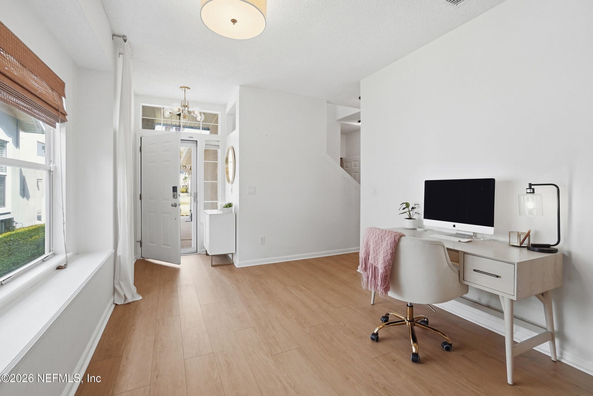 Welcome to 695 Selva Lakes Circle, an incredible opportunity to live right in the vibrant heart of Atlantic Beach. Nestled in the highly desirable Selva Lakes neighborhood, this prime location offers a coastal lifestyle that is truly second to none. Situated directly across the street from the beloved Jack Russell Park, you have gorgeous green spaces right outside your front door, and you are just a short, breezy stroll from the pristine sands of the Atlantic Ocean and the bustling dining and boutiques of Beaches Town Center. Step inside to discover a beautifully designed, light and bright floor plan that perfectly captures the airy feel of coastal living. Gorgeous light-colored laminate floors flow seamlessly throughout the living spaces, reflecting the abundant natural sunlight and giving the home a fresh, modern aesthetic. The heart of the home is a stunning custom kitchen, thoughtfully appointed with premium finishes to inspire your inner chef. The bedroom provides a peaceful retreat accompanied by beautifully updated secondary bathrooms that offer a clean, spa-like feel. The elegant indoor spaces transition effortlessly into a private outdoor oasis designed for total relaxation. Enjoy your morning coffee or evening sea breezes from the comfort of the expansive covered screened porch. Looking out from the porch, you will find an incredibly easy-to-maintain backyard showcasing beautiful pavers framed by lush, tropical greenery. This fully private setting is the perfect low-maintenance retreat for hosting summer barbecues or simply unwinding after a long day at the beach. Leave the car in the driveway and embrace the ultimate walkable beach lifestyle. Whether you are looking for a full-time coastal sanctuary or a turn-key beachside getaway, this thoughtfully updated home places the very best of Atlantic Beach living right at your fingertips.