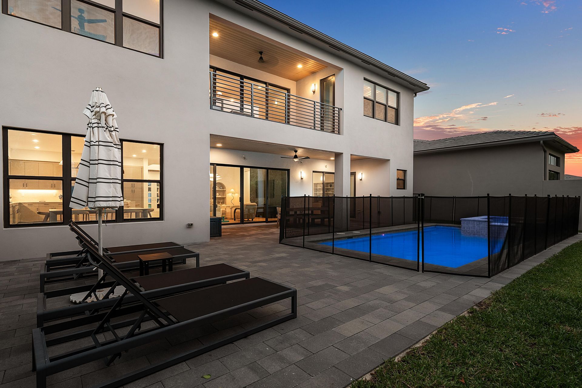 Welcome to refined modern luxury in Lotus Palm, one of Boca Raton's most prestigious, guard-gated communities known for its resort-style living and unmatched amenities. Residents enjoy a newly opened, state-of-the-art clubhouse featuring a full-service restaurant and bar, resort-style pools, fitness center, tennis and pickleball courts, and a vibrant, lifestyle-driven atmosphere set within beautifully landscaped surroundings. Ideally located near top shopping, dining, and major roadways, and zoned for A-rated schools, Lotus Palm offers the perfect blend of convenience and elevated living. This exceptional Maldives model is among the most desirable new construction homes in the community, offering over $500,000 in builder interior and exterior upgrades. Thoughtfully designed with soaring ceilings and an open-concept layout, the home is filled with natural light and seamless indoor-outdoor flow. The chef's kitchen is a true centerpiece, showcasing quartz countertops, upgraded cabinetry, Wolf and Sub-Zero appliances, and a custom Viola Calacatta coffee bar, all opening to expansive living and dining areas ideal for entertaining. The main level also features a spacious office/den, an ensuite bedroom, and a large game room with a cabana bathroom. Upstairs, the luxurious primary suite offers a private balcony retreat, complemented by three additional ensuite bedrooms, a large loft, and a fully equipped movie theatre/media room. Step outside to your private backyard oasis, complete with a saltwater heated pool and spa, an expansive covered lanai with wood-paneled ceilings, and serene outdoor living spaces designed for relaxation and entertaining. Additional upgrades include a custom wood entryway, a striking 360-degree stone-wrapped media wall, whole-house water filtration system, designer wallpapered bathrooms, custom-painted bedrooms, and the home is being offered fully furnished for a true turnkey experience.